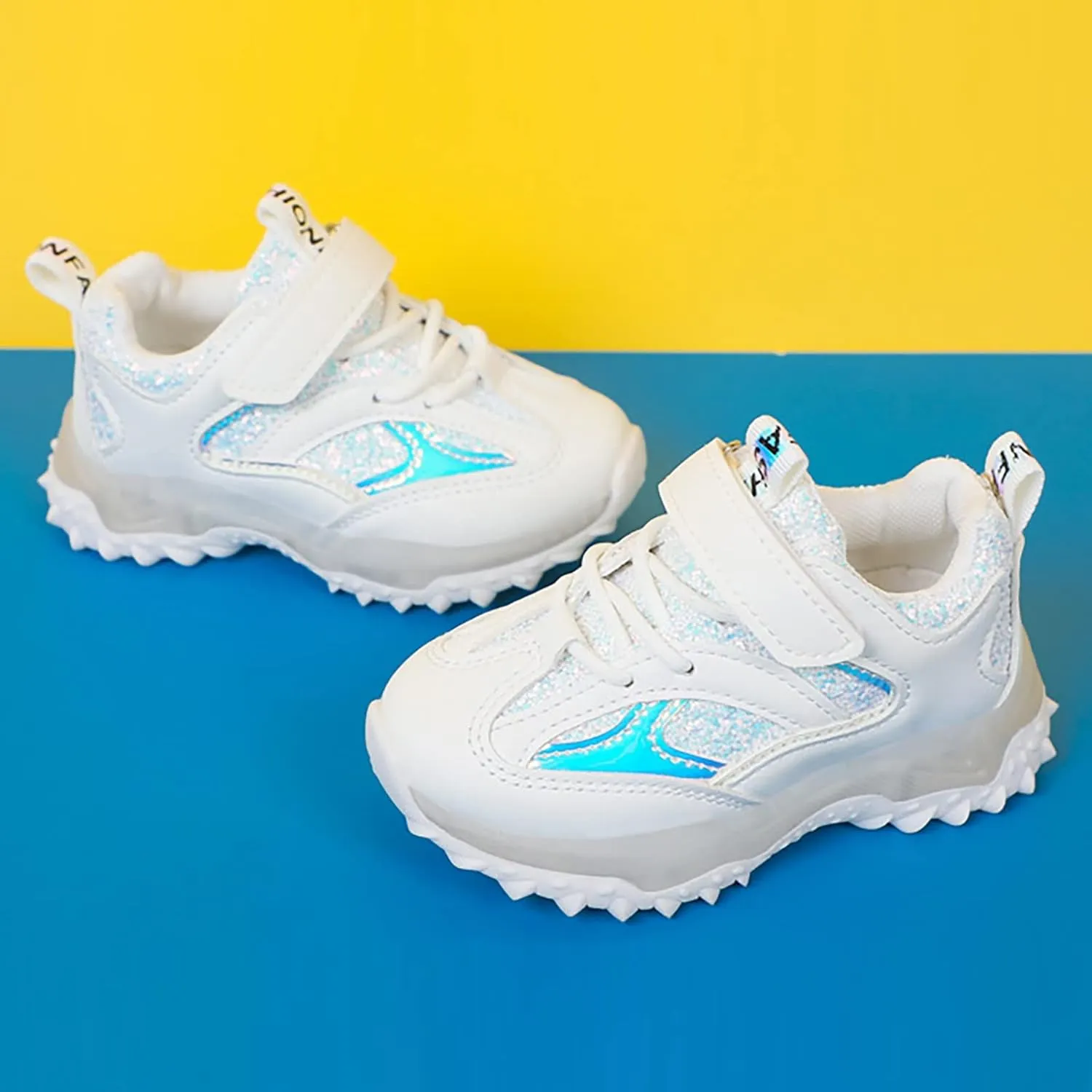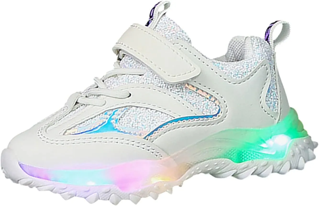 Spring Autumn Non Slip Soft Sole Baby Toddler LED Flashing Lights Shoes Boys Girls Kids Sports Metallic Running Shoes